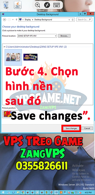Bước 4. Chọn hình nền muốn thay đổi. => sau đó chọn “Save change” để lưu hình mới đổi.