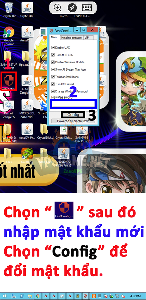 Mở “FastConfig” => Tiếp theo tiến hành nhập mật khẩu mới. => Chọn “Config” để lưu mật khẩu mới.