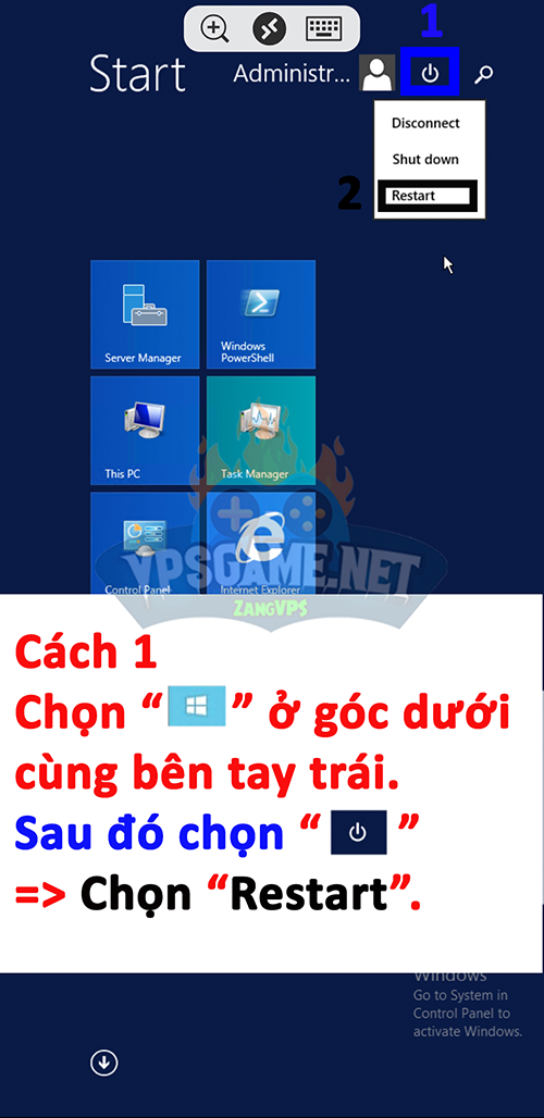 Cách 2. Chọn “Restart ZangVPS” VPS sẽ tự khởi động lại.