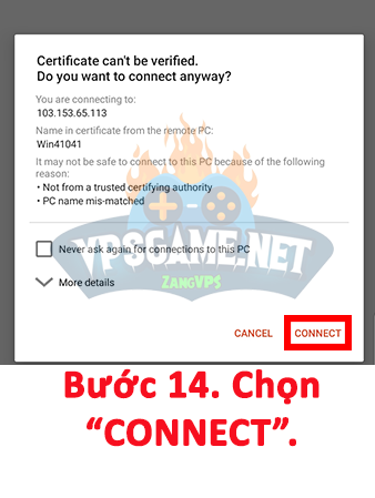 Bước 14. Nếu có thông báo như trong hình phía dưới các bạn chọn “CONNECT“.