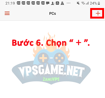 Bước 6. Sau khi đã vào được ứng dụng như hình bên dưới ta chọn ” + ” để thêm VPS vào điện thoại.