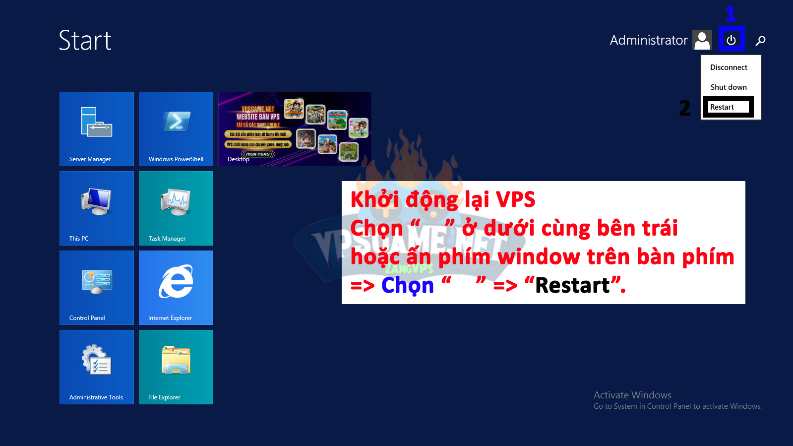Hướng dẫn khởi động lại VPS trên PC/Laptop.