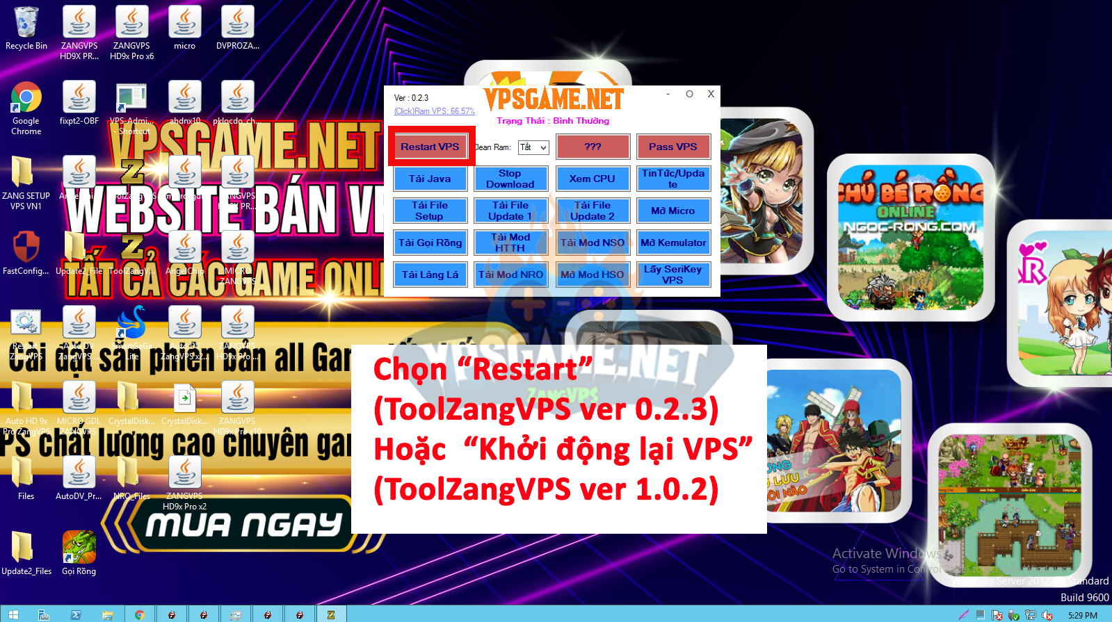 Bước 2. Chọn “Restart VPS” đối với ToolZangVPS ver 0.2.3 hoặc “Khởi động lại VPS” đối với ToolZangVPS ver 1.0.2.