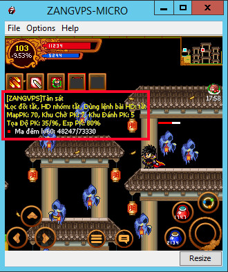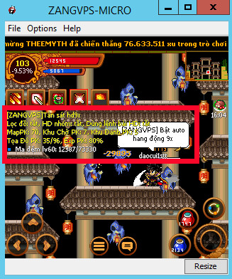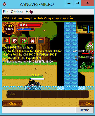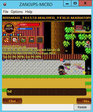 Bây giờ các bạn đang sử dụng bản mod HD9x Pro của ZangVPS và đang tiến hành treo up vàng, up exp ở 1 map nào đấy