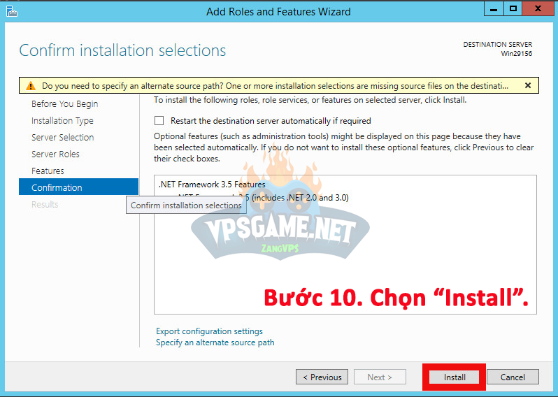 Bước 10. Chọn “Install” để cài đặt .NET Framework 3.5.