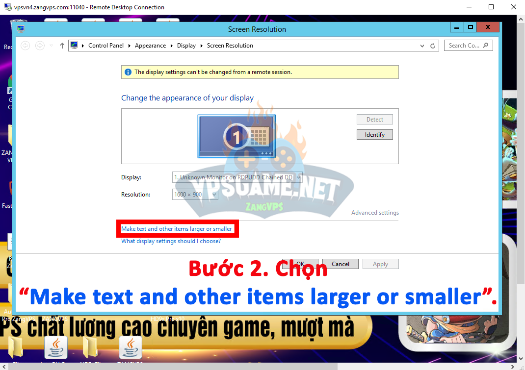 Bước 2. Chọn “Make text and other items larger or smaller“.