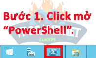 Bước 1. Trên thanh taskbar của VPS click mở “PowerShell“.