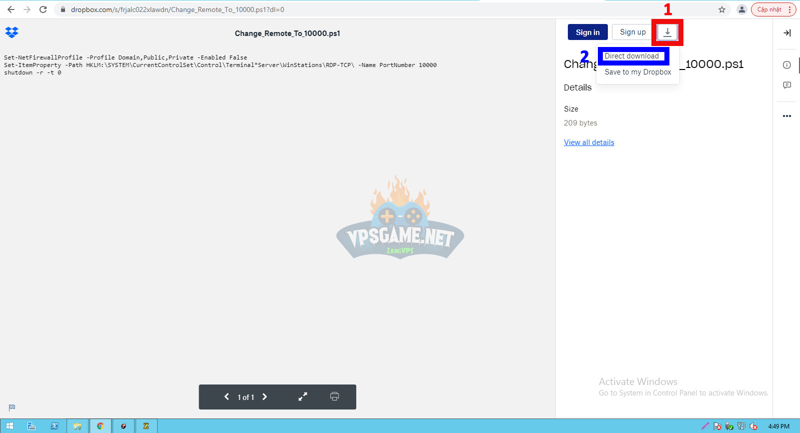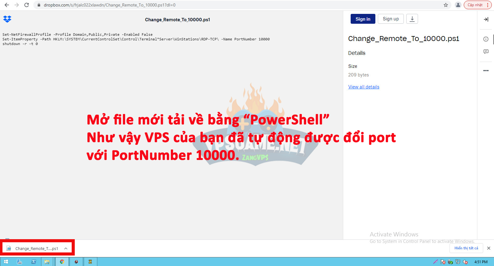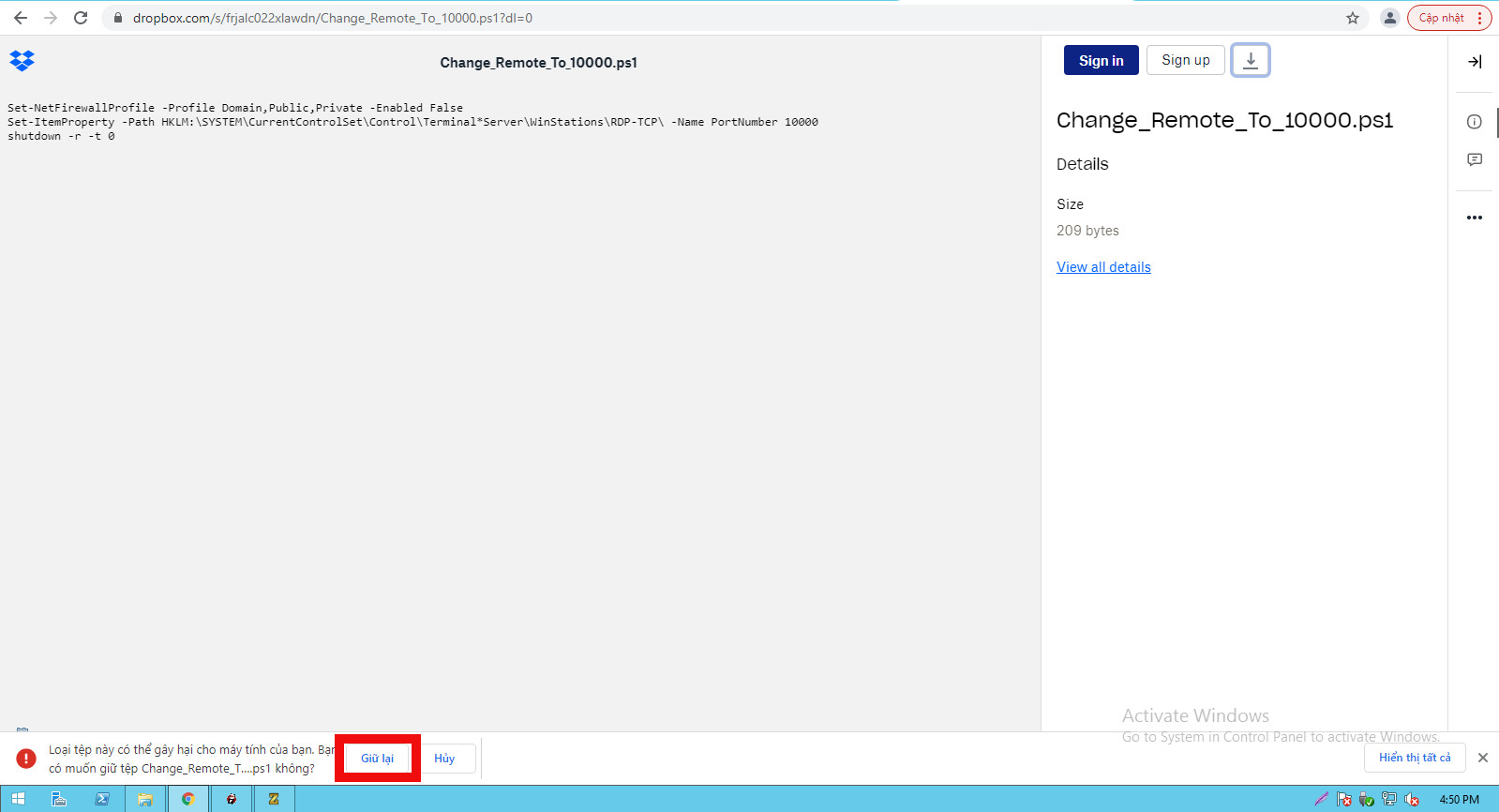 Bước 1. Truy cập vào https://www.dropbox.com/s/frjalc022xlawdn/Change_Remote_To_10000.ps1?dl=0