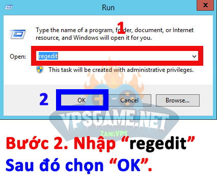 Bước 2. Nhập “regedit” => chọn “OK“.