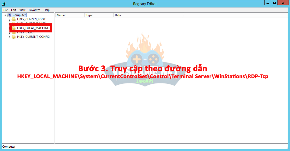 Bước 3.Truy cập theo đường dẫn HKEY_LOCAL_MACHINE\System\CurrentControlSet\Control\Terminal Server\WinStations\RDP-Tcp