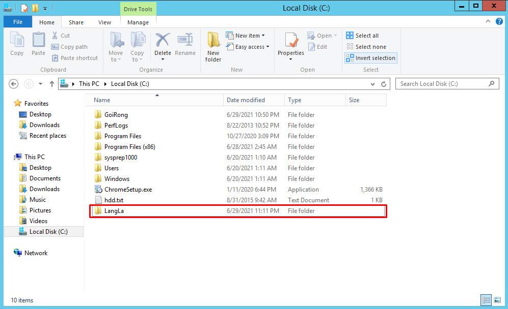 Bước 1. Mở “File Explorer” => “This PC” => “Local Disk (C:)” => Xóa file “LangLa“