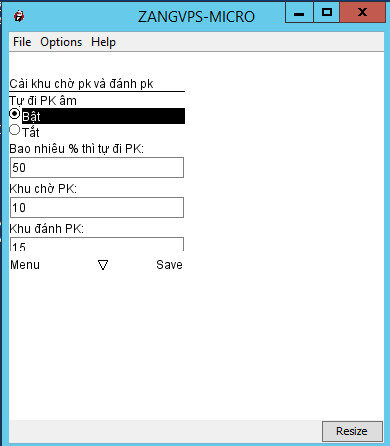 - Bao nhiêu % thì tự PK: 50 (Với nick đã tắt PK âm thì phần này không quan trọng)