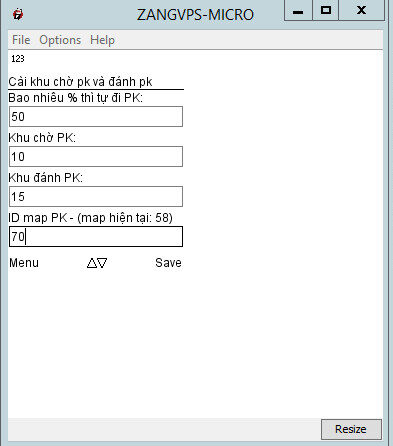 - ID map PK – (map hiện tại: 58): 70 (Map70: Thung lũng chết đây là map tôi dùng để PK âm các bạn có thể cài map khác. ID map có thể tham khảo tại đây)