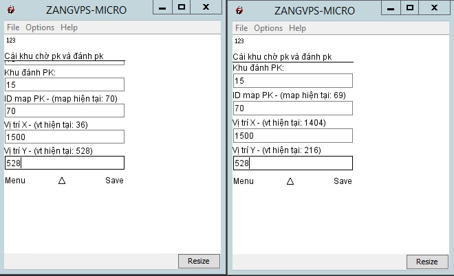 – Mình cài tọa độ (1500 – 528) đây là vị trí nick của bạn di chuyển đến để bắt đầu PK âm.